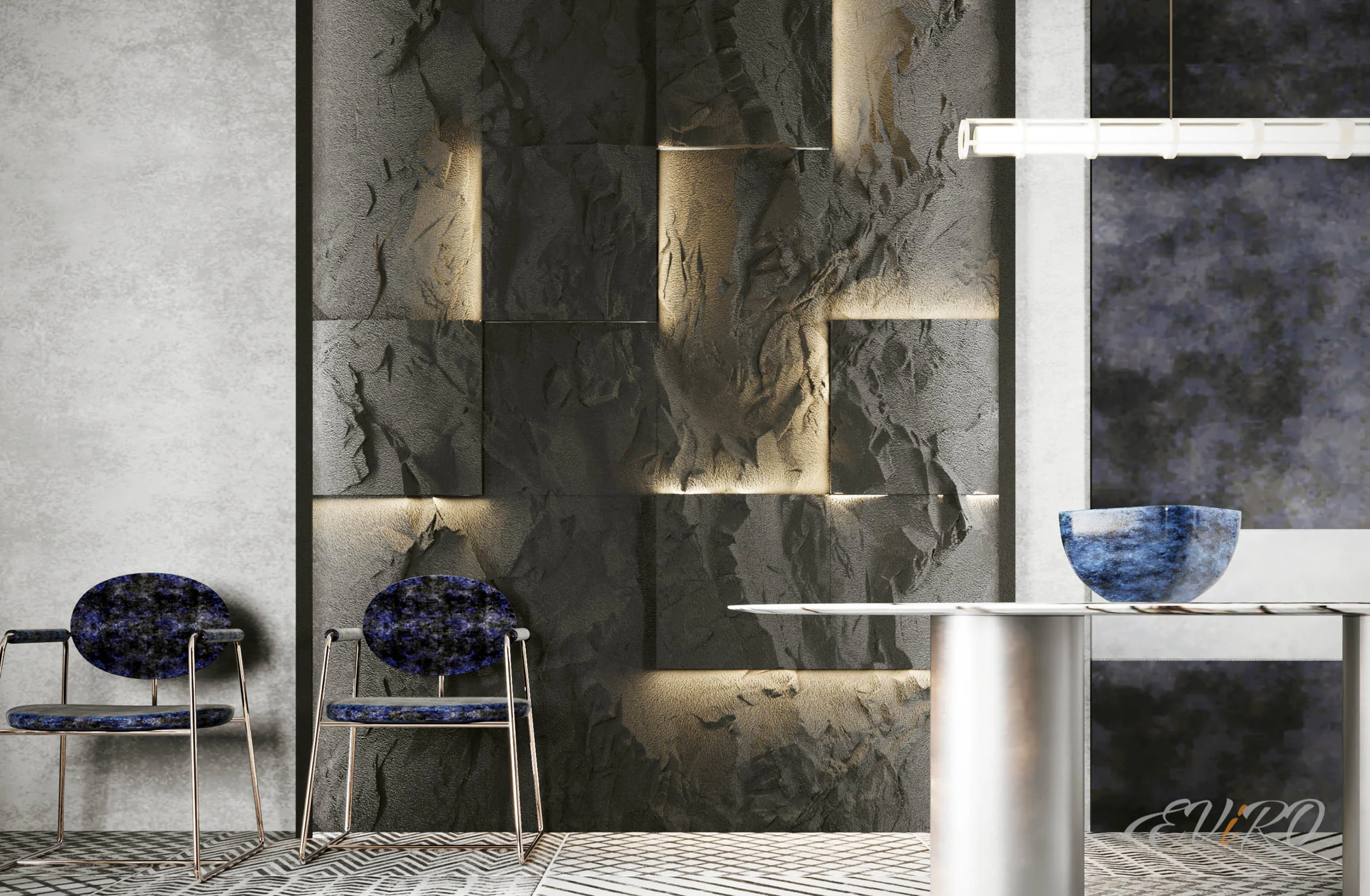 3D панели с поверхностью под камень станут акцентной зоной офиса, ресторана или кафе, любого общественного интерьера, где необходимо подчеркнуть креативность.
